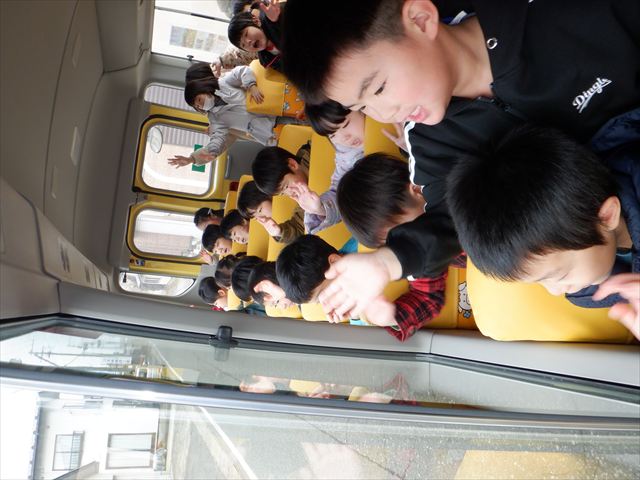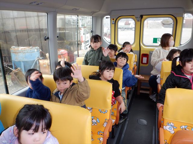 11月27日(木) 四ツ小屋地域で働いてくれている方々に勤労感謝のプレゼントを届けに行ってきました。例年は年長・年中組が四ツ小屋の地域を散策しながら直接感謝の気持ちを伝え、手渡ししていますが、今年は熊の影響があり、年長組の子どもたちがバスで届けに行きました。子どもたちはバスの中からのごあいさつとなりましたが、温かく対応してくださる地域の方々に嬉しそうな様子を見せていました。お忙しい中の突然の訪問に対応していただいた地域の皆様、ありがとうございました。今後も四ツ小屋の子どもたちを一緒に見守っていただけたら嬉しいです。よろしくお願いします。